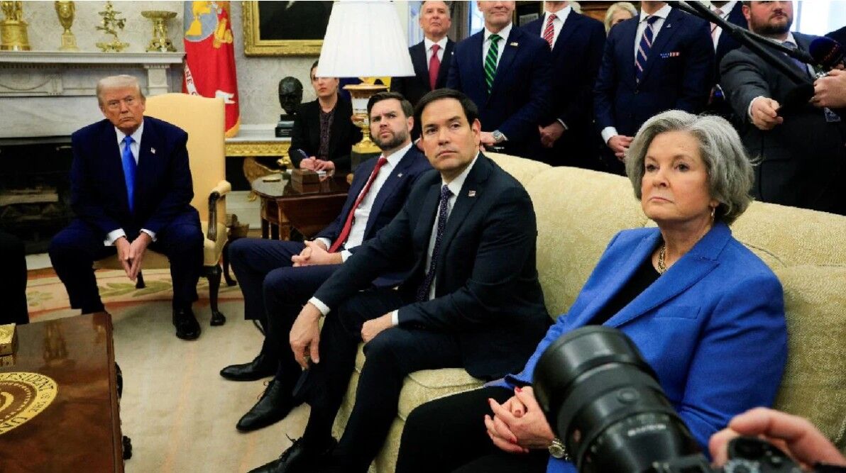 (左から)トランプ、ヴァンス、ルビオ、スージー・ワイルズ大統領首席補佐官