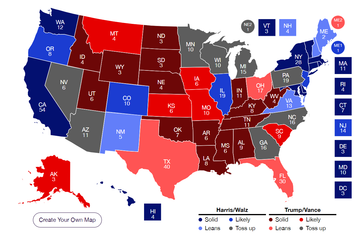 アメリカ大統領選挙投開票日まで約2週間となった。現状では、ドナルド・トランプ前大統領支持が増えており、ハリスは厳しい状況になっている。ジョー・バイデン大統領撤退によって、カマラ・ハリス副大統領待望論が醸成され、激戦州が多い中西部の代表的な男性像を示しているミネソタ州知事ティム・ウォルツを副大統領候補として選ばれた8月から9月にかけて、ハリスが支持率でトランプを逆転し、激戦州でも軒並みハリスが優位な立場に立った。